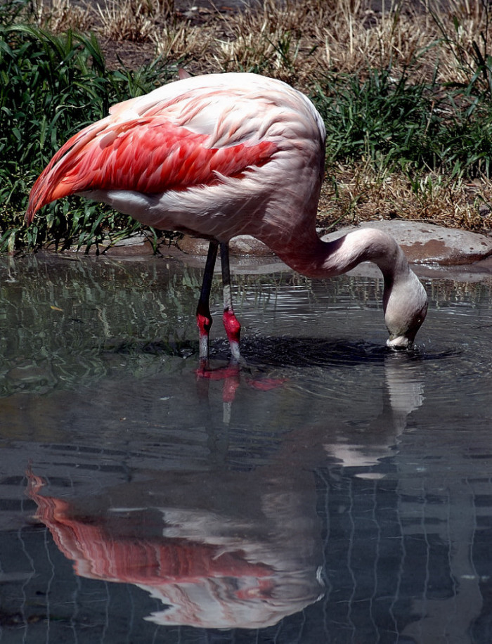 Potrei sbagliarmi, ma la foto mi sembra scattata a Etnaland-Parco dei Dinosauri. Le grate che si vedono nel riflesso sono quelle della recinzione dove sono ospitati alcuni fenicotteri in cattività.