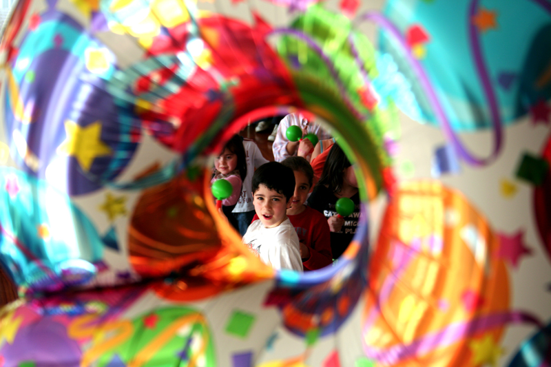 Bella! la girandola di colori dà l' idea di festa e piacevole confusione, con il festeggiato al centro di tutto...
