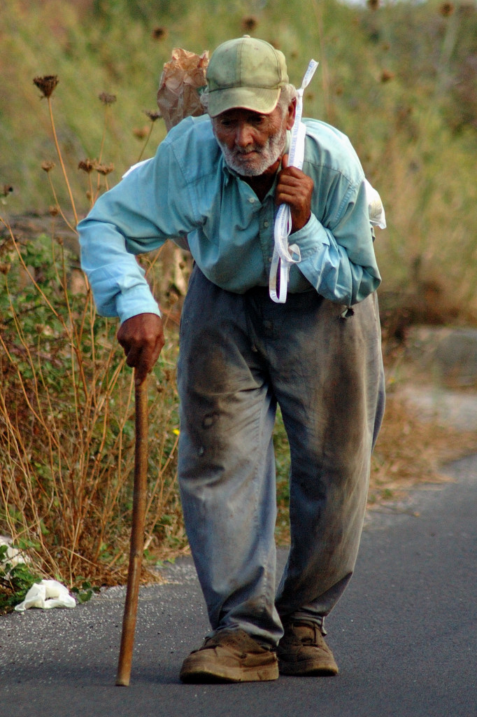 Ottima, bellissima foto non solo tecnicamente. Si legge bene tutto il peso che quest'uomo si porta dietro: il peso del fardello sulle spalle, quello dell'età e quello di aver vissuto una vita non facile. Complimenti per lo scatto  _________________ ____Piero_______