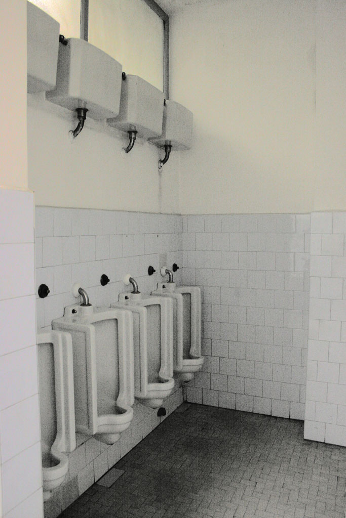 Un'ottica più grandangolare forse ti avrebbe permesso di ritrarre meglio lo spazio angusto, di avvicinarti di più, aumentare il senso di profondità, e allo stesso tempo evitare il fastidioso muro a sinistra.