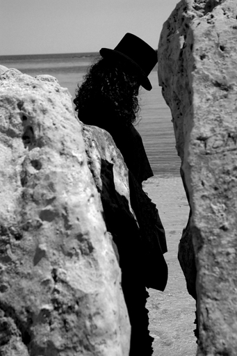 Bel b/n , suggestivo e anche un pò surreale... anche perchè mi chiedo cosa ci fa uno con un cilindro in testa in riva al mare...