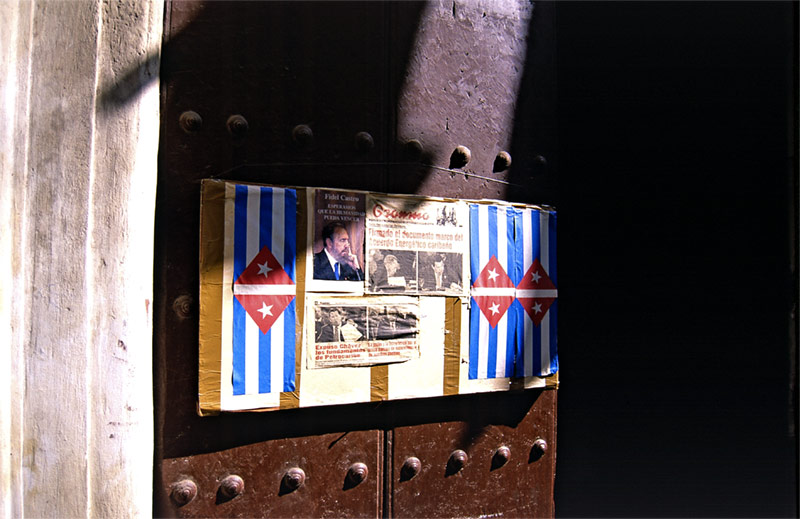 Secondo me c'è un'ombra un pò invasiva, ed un taglio che non permette di capire bene la locandina, a parte la bandiera di Cuba e la presenza del Che.