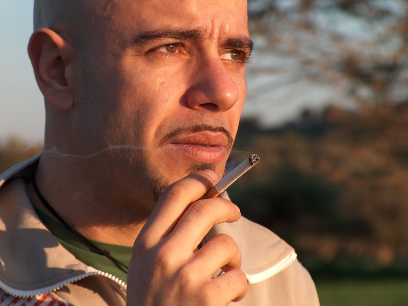 Ciao Stefy. Ottimo scatto, cogli un bel momento: lo sguardo, la luce calda, il fumo di sigaretta, le labbra socchiuse a soffiare fuori la boccata... Decisamente descrive un'atmosfera di pensosità, oserei dire quasi enigmatica: mi porta a chiedermi a "cosa" stia pensando il tuo amico. Quindi il risultato della tua foto è raggiunto