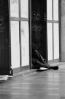 Mi ha attratto molto la scritta sul muro, accanto alla nicchia dove stava questo clochard...