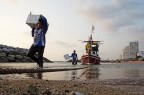 | Golfo di Thailandia, 150 km sud-est di Bangkok. Durante le ore di bassa marea nei giorni di luna piena (cioè quando le maree hanno intensità massima) alcune famiglie di Samae san, piccolo villaggio di pescatori, si ritrovano per raccogliere molluschi. |