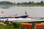 Una barchetta ormeggiata in baia in una mattina molto nuvolosa