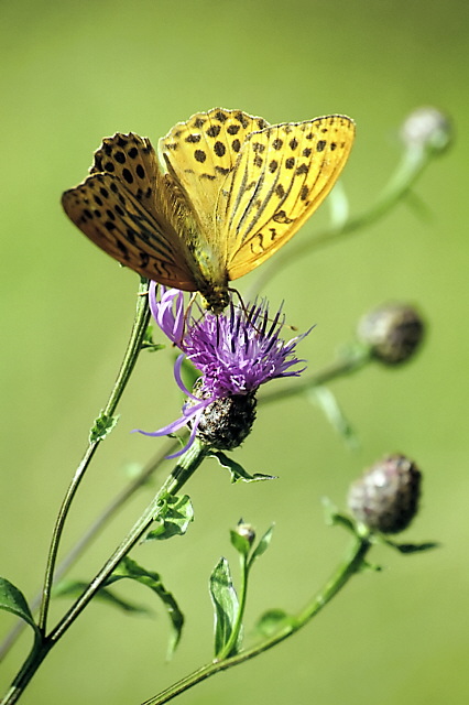 Dico la mia: i boccioli sono belli ma portano l'attenzione fuori dal soggetto, erano buoni per un'altra foto. La luce del giorno è la peggiore in assoluto per questi scatti, più che un lampo di schiarita si poteva cercare di diffondere in qualche modo la luce solare. Certo che la farfalla non stà lì ad aspettare....