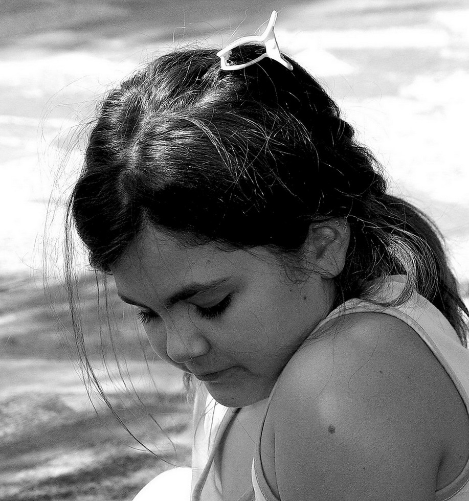 Mi sarebbe piaciuto vedere gli occhi. Lo sguardo basso che tende a chiudere gli occhi, a me non piace, gusti... Credo che i capelli creino un certo disordine Il volto è a mio avviso un po' troppo 'incassato' nella spalla. Ciao