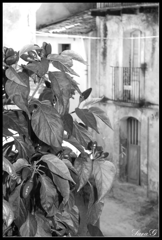 Si sente il caldo del luogo, se ne sente addirittura il silenzio omertoso, ne indica una caratteristica forse anche caratteriale, il peperoncino, senza l'urlo degli inutili colori.