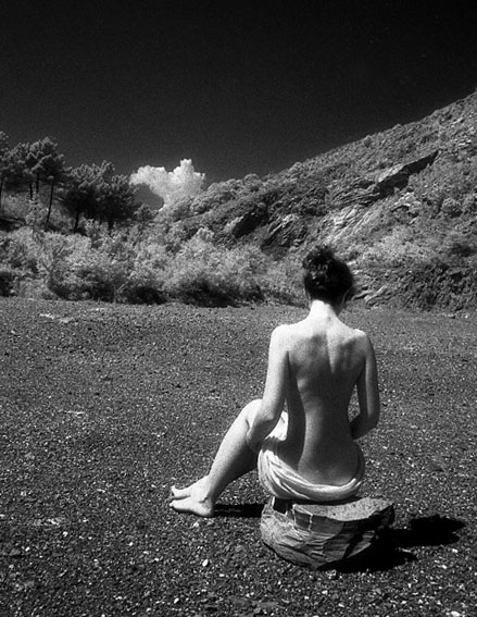 ciao, si tratta di una foto scattata con pellicola Infrared della Kodak con filtro rosso scuro, esposta a 800Iso, luce di mezzogiorno, diaframma f8, tempo non ricordo....il tutto sviluppato in rodinal....e per adesso non ancora stampato (questa è una scansione della pellicola)