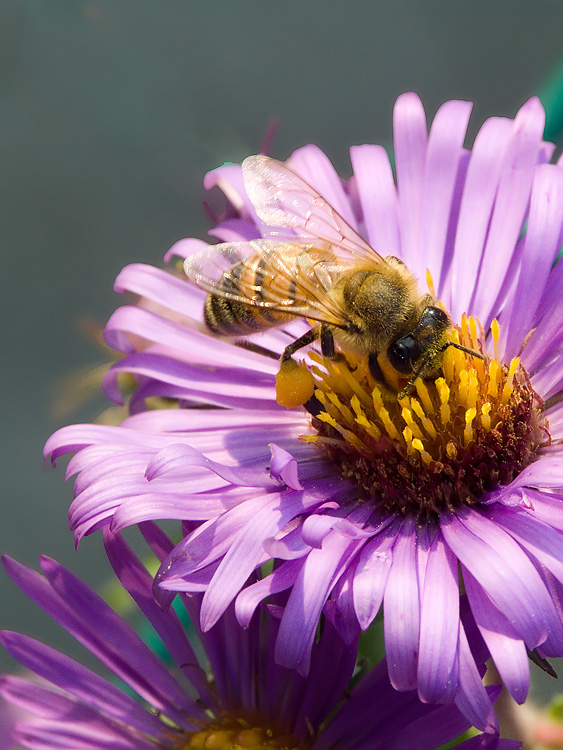 A volte nella fretta di scattare si tende a farlo subito dopo la certezza di aver focheggiato giusto, soprattutto per la giustificata paura che l'insetto scappi via. Ma questo di solito vuol dire tenere il soggetto in posizione sempre troppo centrale. Prova ad immaginare che spettacolo di foto sarebbe se la vespa fosse più in alto a sx. e ci fosse molto più fiore su cui appoggia.