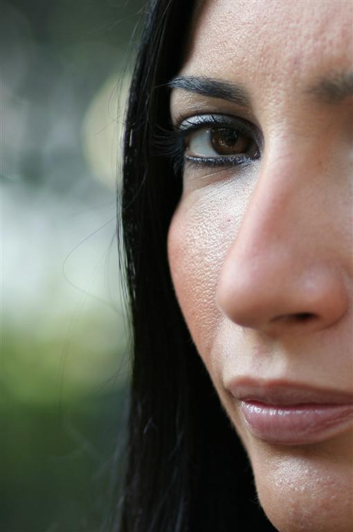 Il taglio è inusuale, il punto di ripresa troppo vicino al volto deforma un pò il viso. Personalmente proverei con un medio tele anche perchè la modella merita.