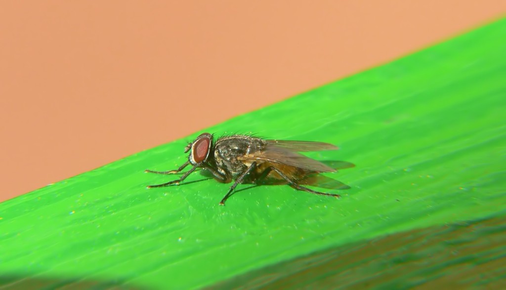 Molto bella la mosca che prende il sole su quel verde accecante!