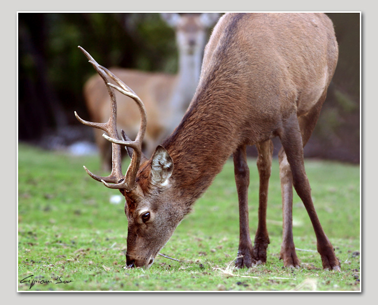 Posso chiederti delucidazioni sul taglio? Come mai hai deciso di non prendere tutto il cervo ma di tagliarlo un po'? E se volevi tagliarlo non era il caso di tagliarlo un po' di piu'? Questa soluzione avrebbe escluso del tutto la testa della femmina dietro, non so se sarebbe stato un bene o un male... |