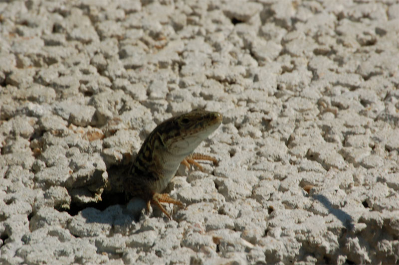 Mah La lucertola è fuori fuoco, completamente in ombra, ed il muretto, che credo fosse bianco, appare di un grigio uniforme.