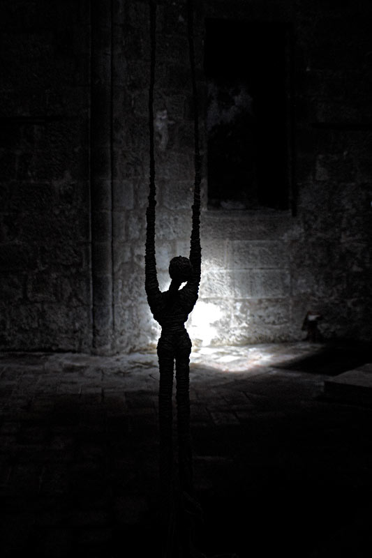 cmq era una mostra di arte moderna , era fatto di corda . con braccia lunghissime , dove riiniziava la forma umana sotto sopra . non so se mi sono spiegato cmq era molto bella da vedere