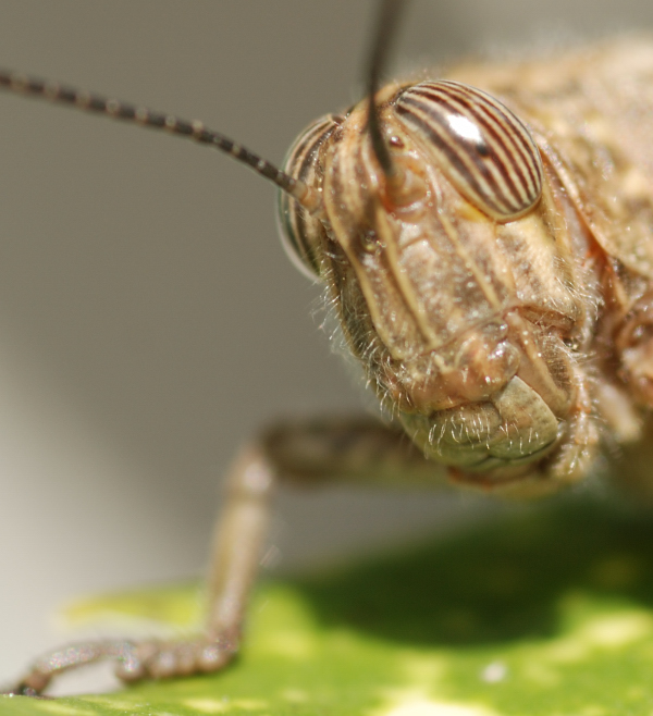 Non mi sento in grado di esprimere un giudizio tecnico e di solito le macro sugli insetti mi lasciano abbastanza indifferente, ma qui la posa della cavalletta (o grillo o altro..) che si affaccia sull' obiettivo, con questa espressione curiosa e quasi umana è veramente carina! Con gli occhi a fuoco sarebbe stato il massimo... Ok!