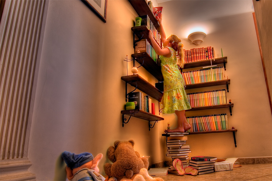 | victor53 ha scritto: | bene il punto di ripresa ed il momento colto. In questo caso mi piace anche il taglio dei pupazzi che danno continuazione alla scena un pochino caotica tipica della cameretta di un bambino. Bella anche la dominante calda. Unica cosa che farei a questa foto è dare una radrizzata al tutto e nello stesso tempo rendere un po' meno presente la parte sx ma senza eliminarla perchè anche quella funzionale al racconto Se non ti dispiace posto esempio |