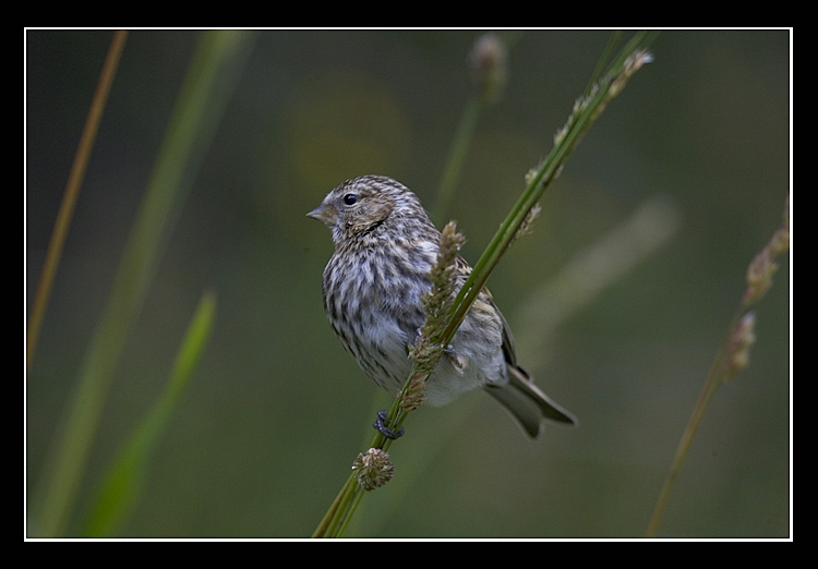 Se fotografato in Italia, direi che si tratta di un Verzellino (Serinus serinus) in abito giovanile (mentre i Verzellini adulti mostrano parti gialle nel piumaggio, il giallo nel giovane è assente).