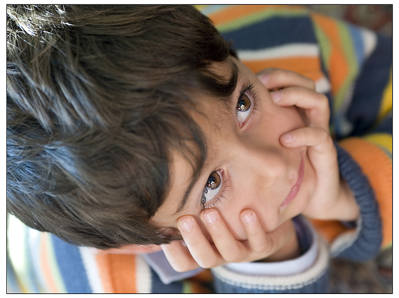 | Capisco il tuo punto.... ma l'oggetto della foto è proprio lo sguardo perso verso la finestra, ed il bambino assorto nei suoi sogni...