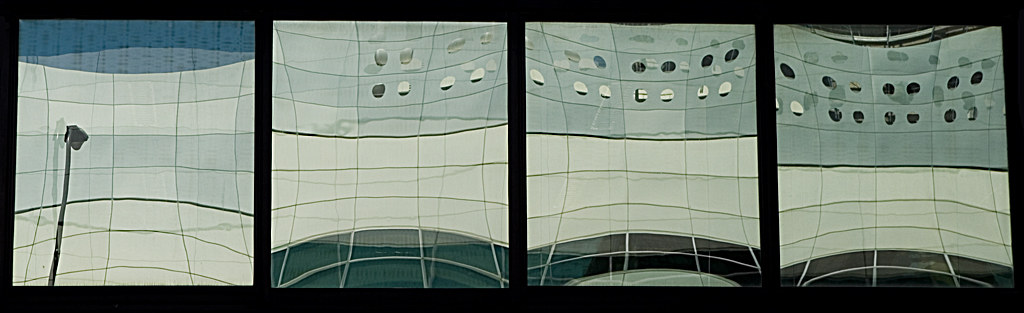 le 4 finestre erano così, allineate, ce ne erano un'altra file sopra ma con riflessi meno interessanti così ho optato per il taglio...