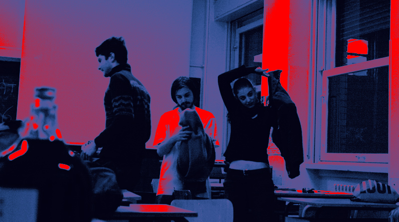 Colori fantastici, soggetti adatti al contesto che probabilmente è un'aula universitaria(?); la foto rende i soggetti dei personaggi in un surreale ambiente musicale, quasi una sala di registrazione...John Cage, Lou Reed e Nico..
