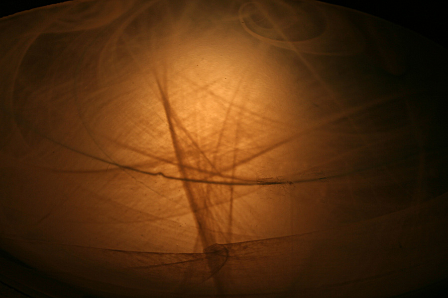 l'oggetto in questione è la plafoniera di un corridoio in casa mia, quindi può darsi che sia rimasta la colla del nastro adesivo d'imballaggio e che abbia, come dire, "marcato" di più le linee morbide della lampada Trattieniti