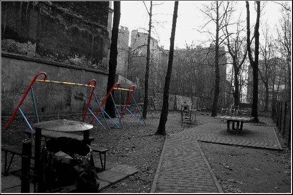 .... seriamente ... se la sensazione che volevi trasmettere è quella contenuta nel titolo avrei lasciato tutto in b&w e avrei omesso dalla composizione il cestino dei rifiuti ....lo vedo come una forzatura del quale lo scatto non ha bisogno