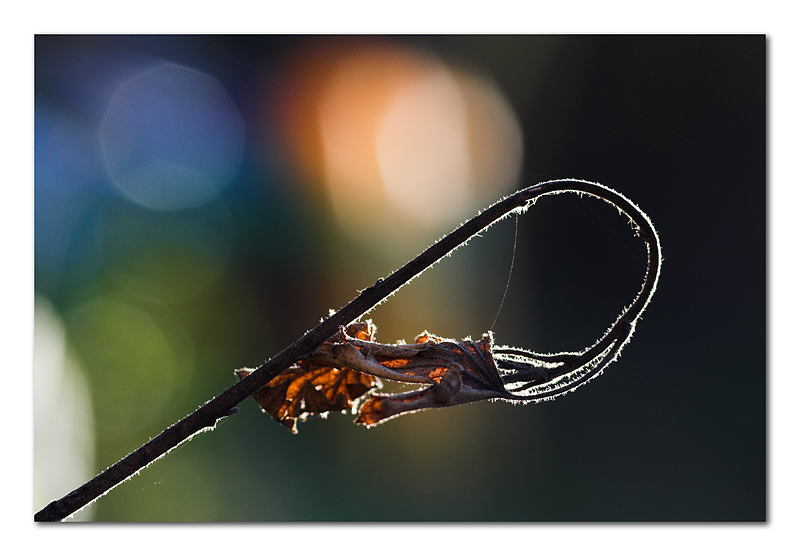 Bellissimo il filo di luce che accompagna tutto il ramo... come sempre l'inquadratura la trovo molto ben ricercata!