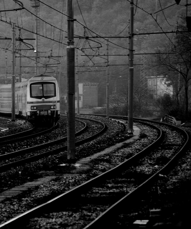 Io avrei optato per un taglio orizzontale, prendendo in prospettiva il serpentone dei vagoni.