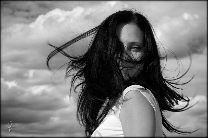 Fai dei bianco e nero stupendi! Perfetta. Bella l'idea dei capelli al vento!