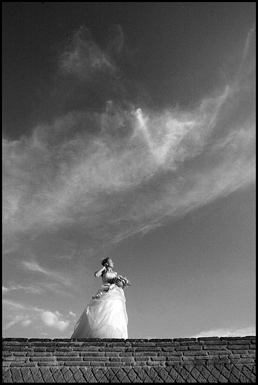 | secondo me invece è proprio la rappresentazione dell'immensità del cielo e lo sguardo della sposa dall'alto del muro che trasmettono le sensazioni in questo scatto! A me piace molto: complimenti!!!