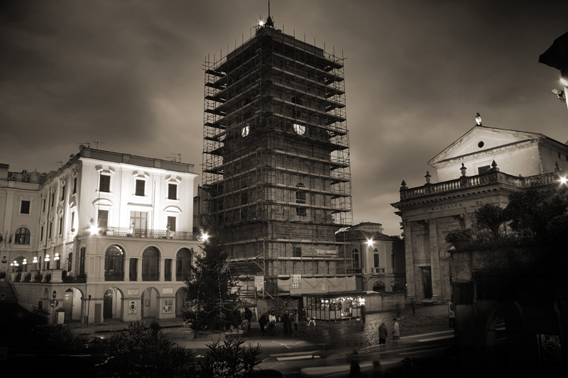 La composizione mi lascia perplesso, poiche' la torre con le impalcature e' in posizione troppo centrale.