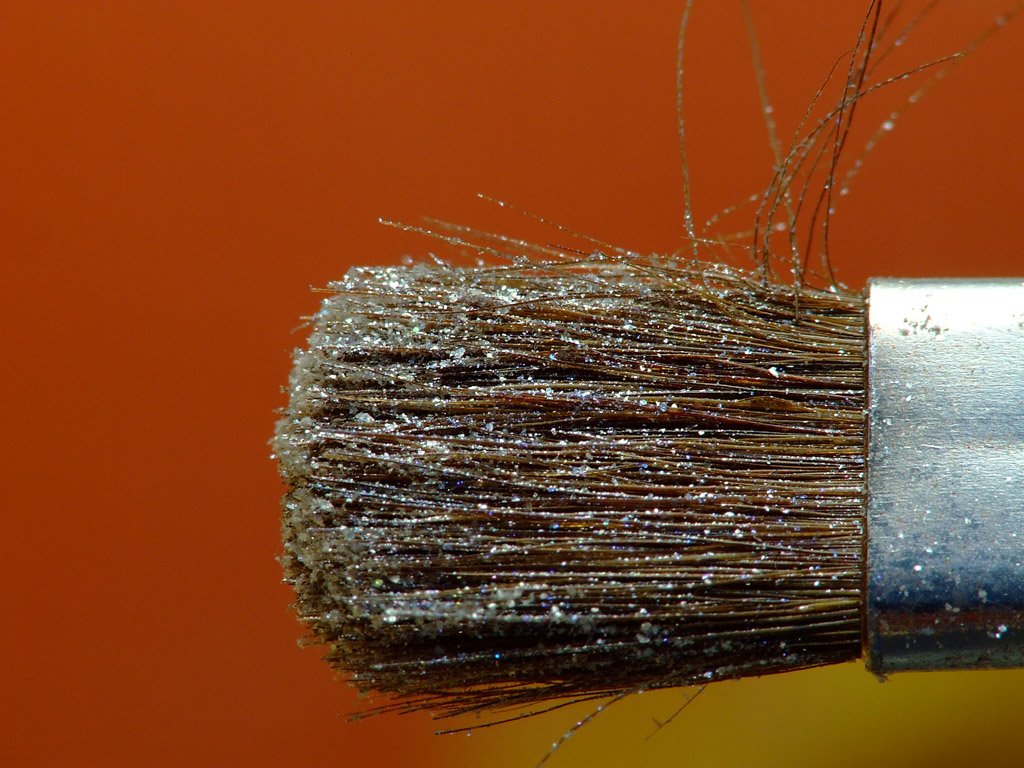 Il pennello in orizzonatale con le setole al centro dell'inquadratura e disposte parallelamente al piano di fuoco, la rendono quasi un foto scientifica.