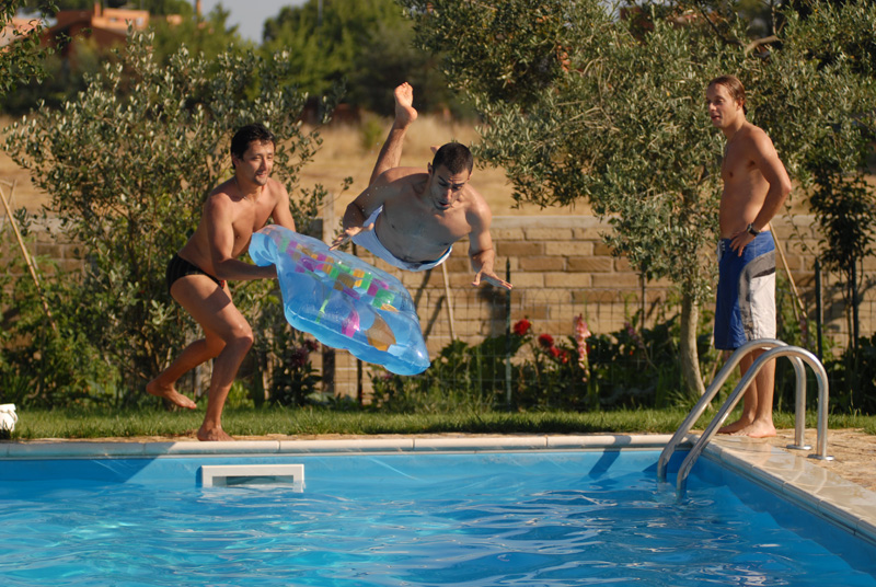 bellissima, mi ricorda l'estate i piscina da un amico, anch'io mi lanciavo dal trampolino però e poi un amico mi buttava sotto il materassino prima che toccassi l'acqua...