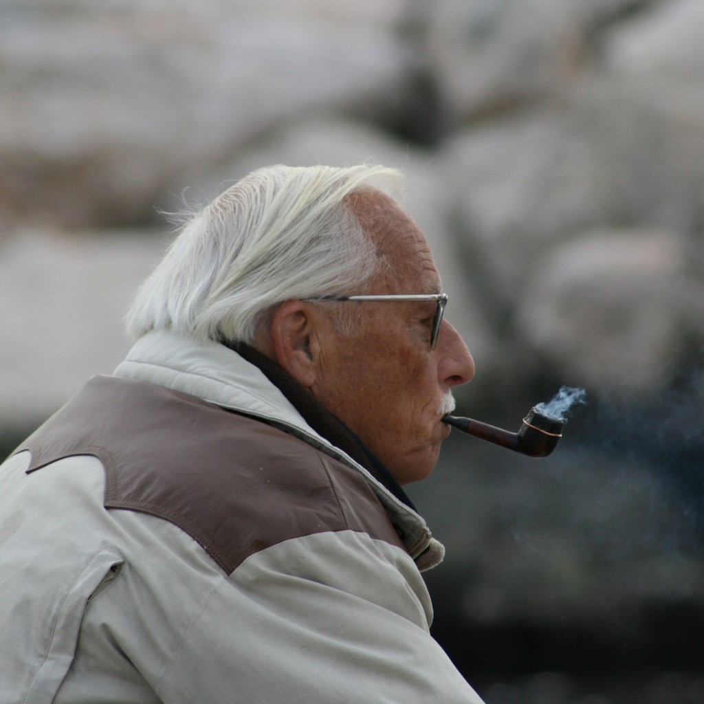Un bel ritratto di profilo dove la pipa, con le sue volute di funo, ha un ruolo determinante e conferisce carattere al personaggio. Molto intrigante lo sgurado puntato dritto davanti a se, che s'immagina perso in pensieri quieti e riflessivi come l'espressione dell'uomo suggerisce.