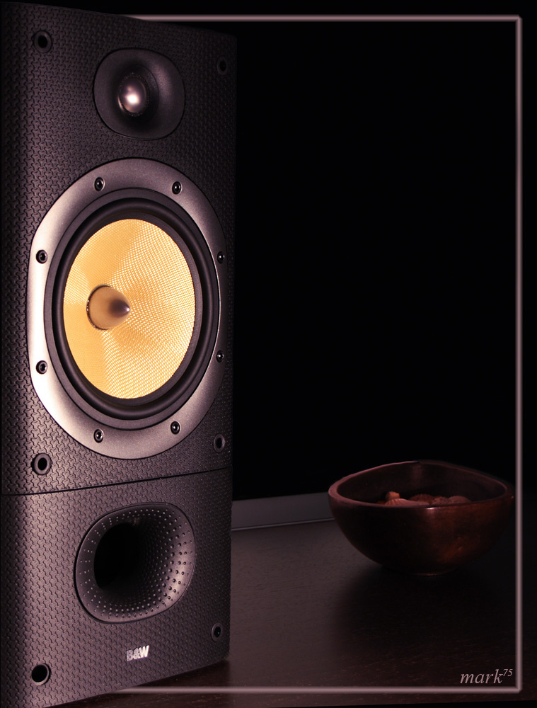 la cassa della B&W, imponente quasi da uscire dalla foto, fredda già di suo e accentuato da un livellamento verso il blu per risaltare anche il woofer in kevlar