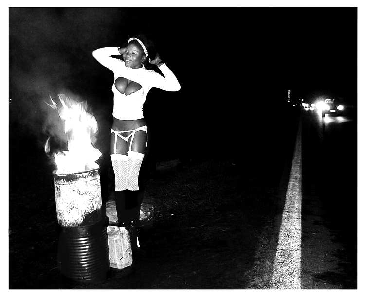 Perche la ragazza ai bordi di una carreggiata,probabilmente al freddo e semi-nuda dovrebbe sorridere a braccia alzate in maniera allegra in quel modo come se fosse felice col mondo?