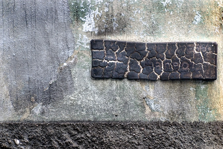Devo supporre, che, se ha deciso di dedicarle uno scatto, questa targa abbia suscitato il suo interesse per qualche motivo, o che per lui abbia un qualche significato. Purtroppo, la foto non contiene alcun indizio, e nemmeno la targa stessa, poiche' risulta praticamente illeggibile (non per scarsa nitidezza della foto...).