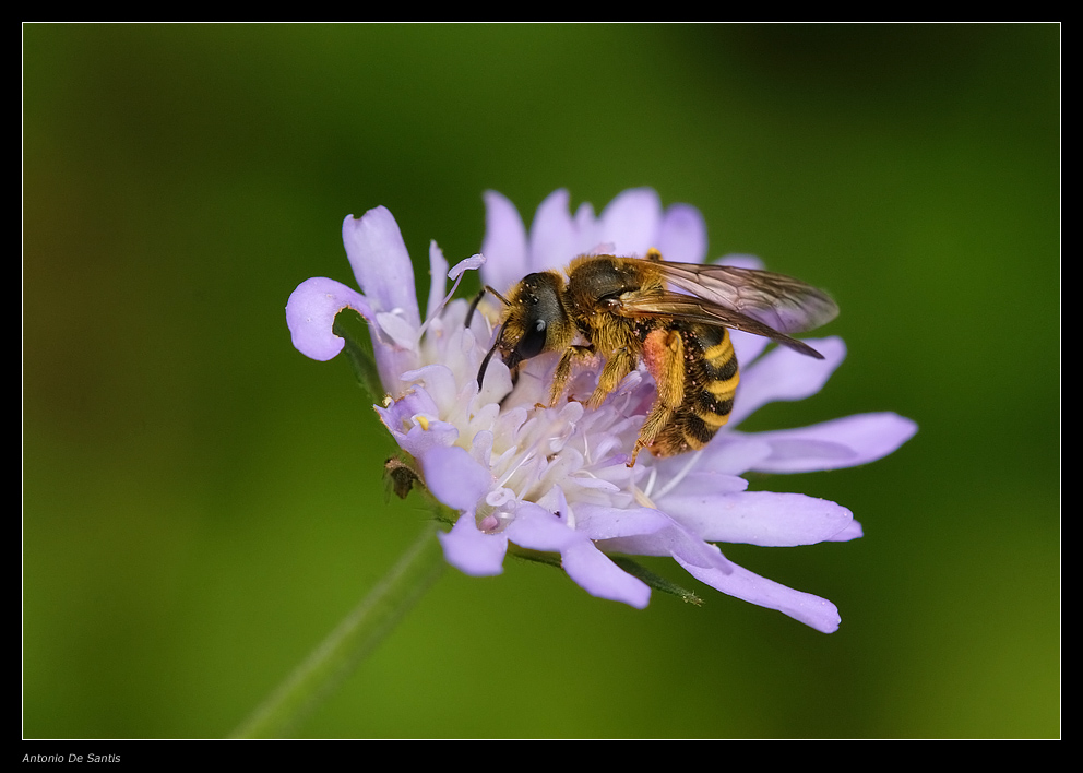 Il gambo del fiore guida l'occhio verso l'insetto seguendo la diagonale del fotogramma...