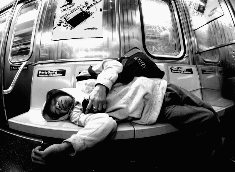 L'ho scattata a New York, avevo visto da poco il titolo del contest e ero andato ad Harlem a sentire un concertino Jazz a cui avevo fatto diverse foto interessanti (ne allego una). Ma in metropolitana era da un po' che c'era quella pubblicità, freedom is sharing a soundtrack, e lì sono tutti con l'ipod e le cuffiette! Così aspettavo il soggetto giusto e zac, mi è capitato questo barbone, non ho resistito! E il fisheye nikon 10.5 che ho preso da poco ha fatto il suo dovere...