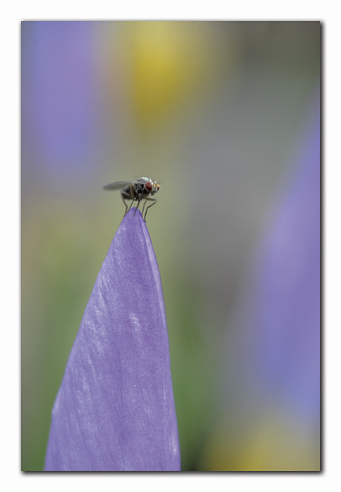 morbido, vellutato e dai colori tenui e profumati questo sfondo è la chiave di lettura della foto, in cui la vetta con la mosca sopra rappresenta la ciliegina sulla torta, quel quid che rende lo scatto di alto livello.