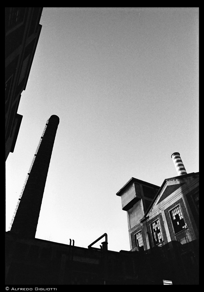 bella la differente luce che colpisce la ciminiera e la facciata di destra