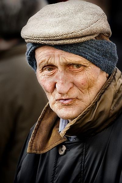 ritratto di un anziano signore di paese, l'esperienza di una vita traspare dal suo sguardo intenso