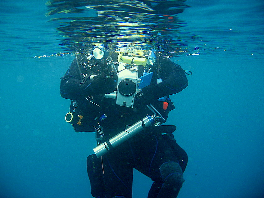 Forse i tempi sono veramente cambiati, ma non è cambiato il fatto che portare sott'acqua tutto quello che serve per fotografare e per la sicurezza fa ancora assomigliare ad un rigattiere ambulante ...