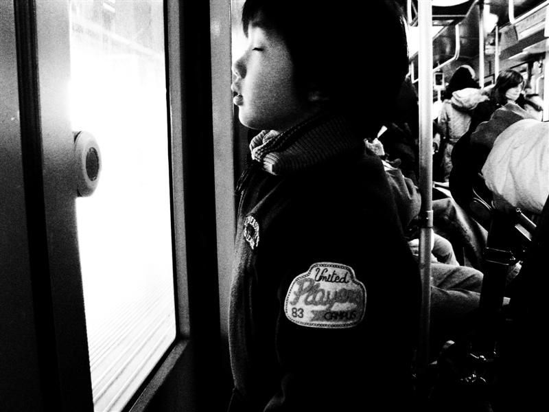 La luce che colpisce il bambino in viso sembra strapparlo dalla realtà e portarlo in un mondo fantastico facendolo evadere da cio che lo circonda.
