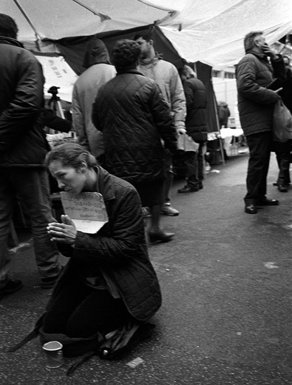 ottima la composizione e B/n molto drammatico...Dal punto di vista personale ho difficoltà a provare compassione per quella donna...Sta recitando una scena indegna col solo intento di ingannare il "suo" pubblico...Mi dispiace davvero...ma non provo pietà!  _________________ www.oltrelafoto.com