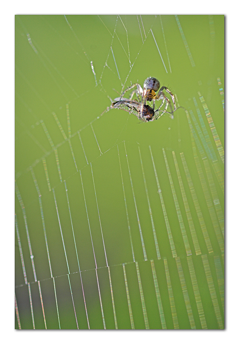 Bella compo,interessante il disegno della ragnatela,sembra un tratteggio!!  |