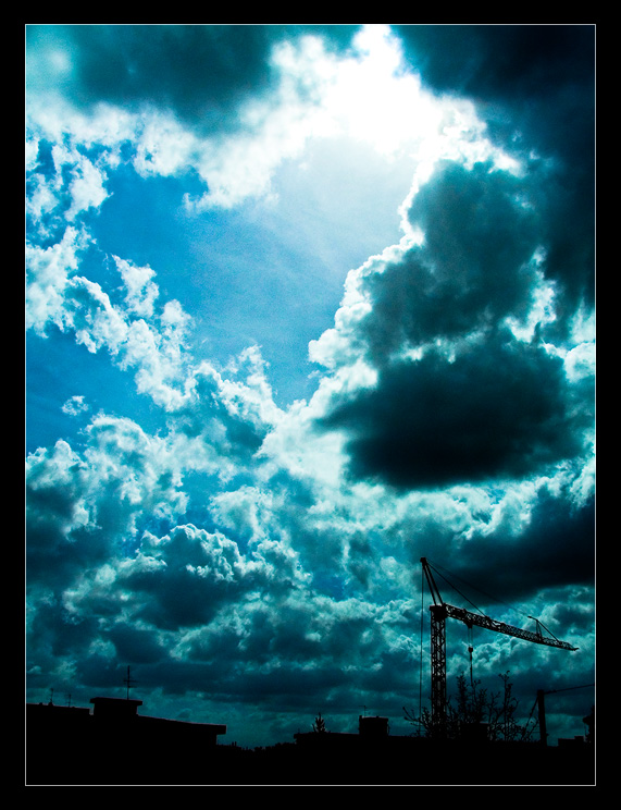 In questo caso però è un dato oggettivo che la presenza della città occupi un ruolo marginale nell'economia dello scatto. Vero è che hai inserito un simbolo dell'espansione urbana molto eloquente, ma resto dell'idea che le proporzioni tra cielo e strutture urbane dovessero essere determinate diversamente per raggiungere i tuoi scopi.