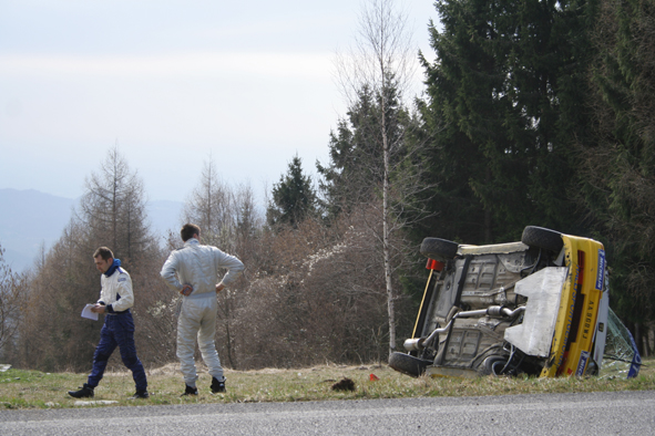 Si intuisce la delusione, perche si vede la macchina capottata , ma non si vede la delusione. Capisco che la posizione era quella, ma sarebbe stato bello, poterla fare, per esempio, davanti al pilota e copilota, con la macchina sullo sfondo. in pratica da come eri tu, ti giravi di 90 gradi a destra e ti mettevi davanti a loro, poi quando si giravano entrambi, con le facce deluse, avresti scattato, stringendo un po, e con la macchina sullo sfondo.